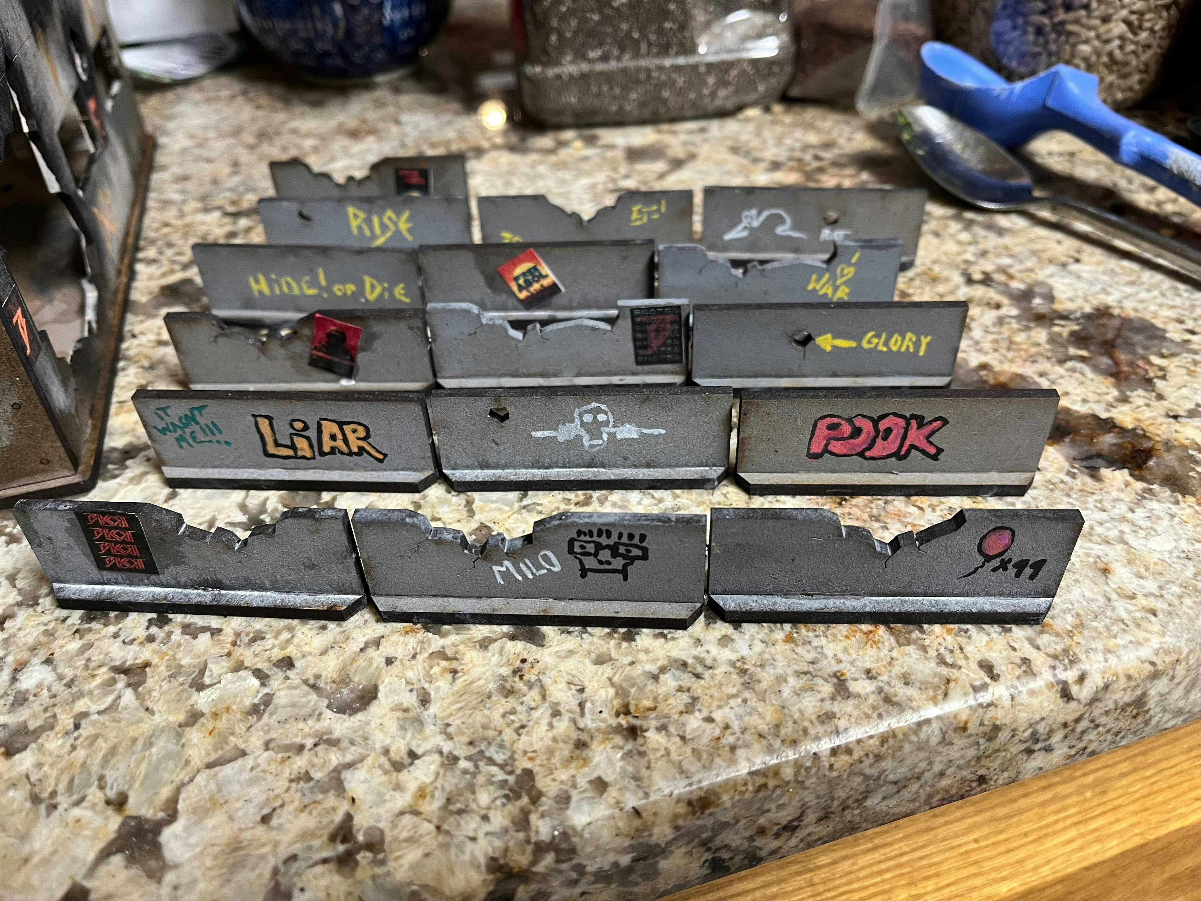 Really cool set of signs for Zona Alfa style games. The Chernobyl sign might be the hardest thing I've ever painted, but it's come out great.