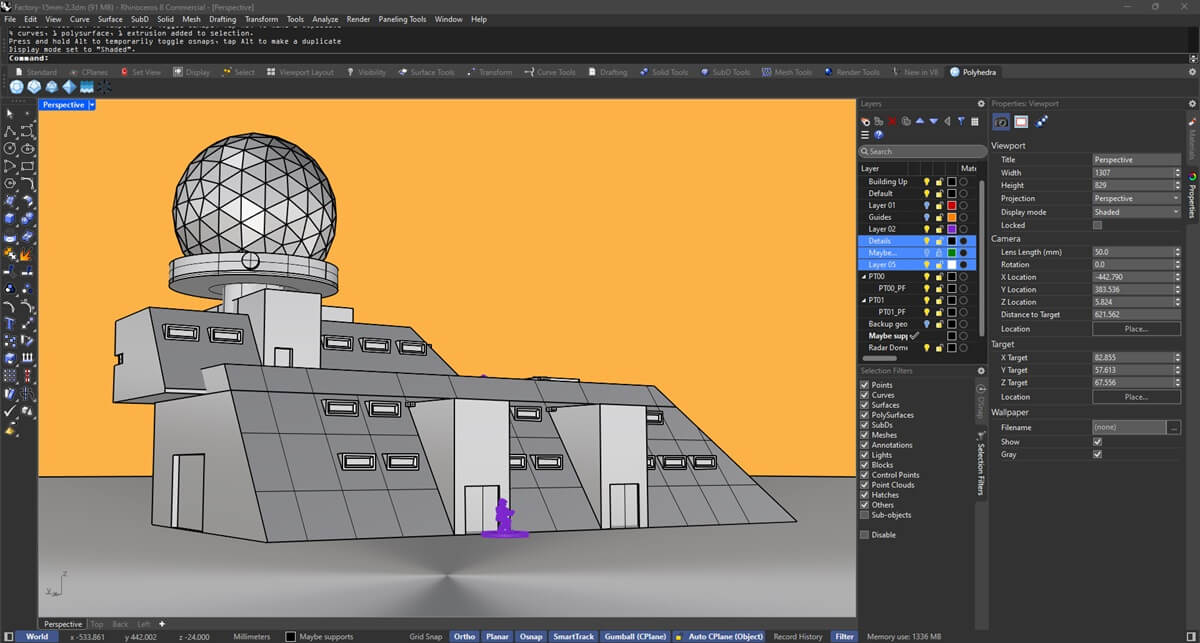 I've used Rhino to CAD up this WIP radar base design. This particular design is natively designed in 1/100 (15mm scale).