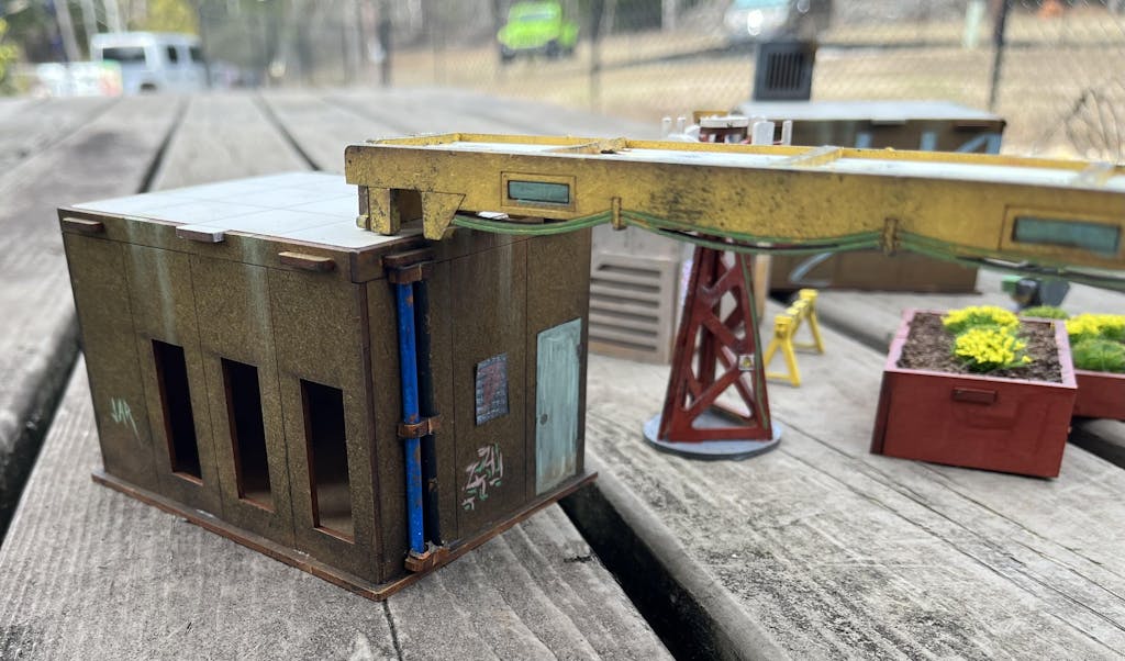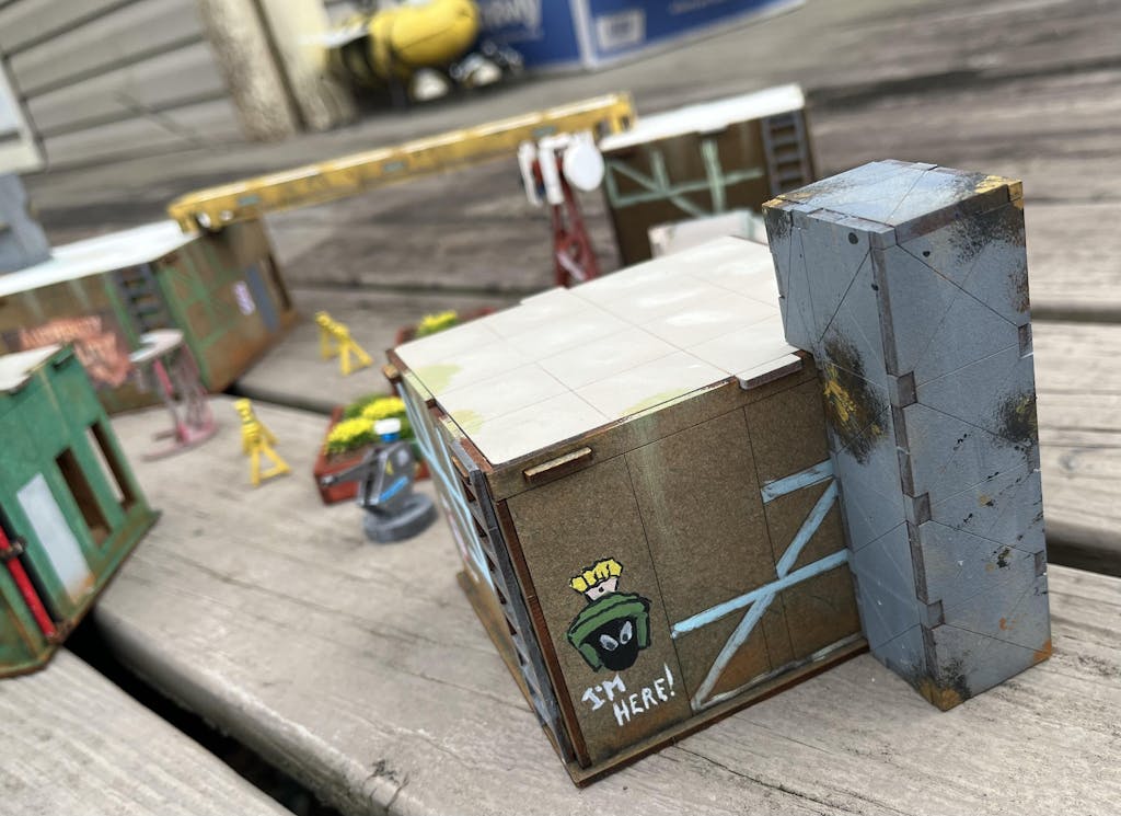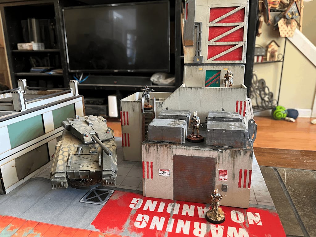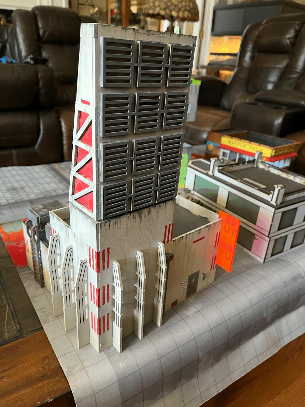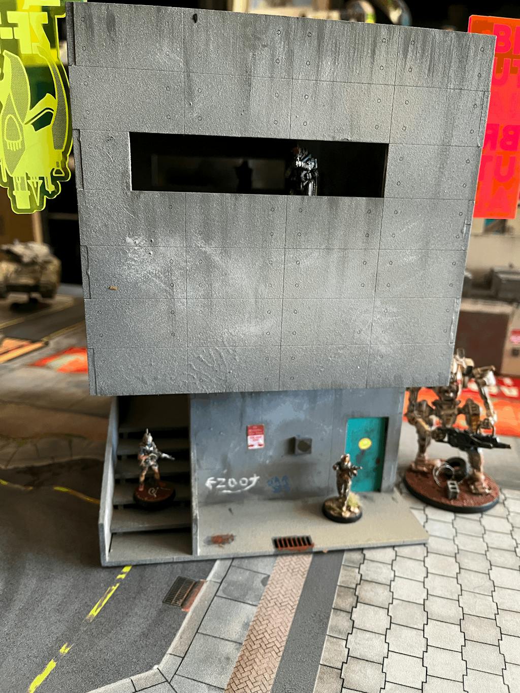 This HUGE building definitely looks great on the table. Video instructions made assembly easy. I love how there was so much room for adding graffiti and weathering. Lots of playable areas, stairs, balconies, roof, interior of upper floor. The stairs fit up to a 40mm base which is great. Super sturdy one assembled as well.