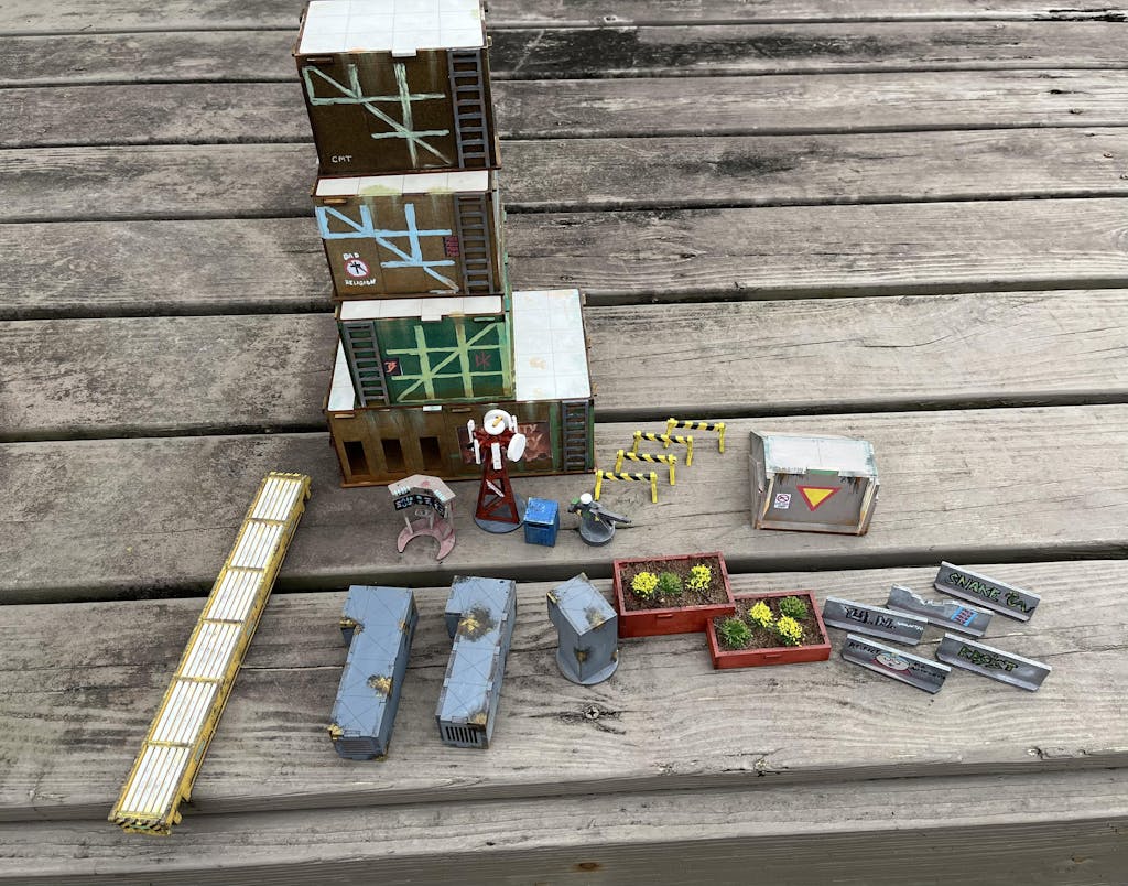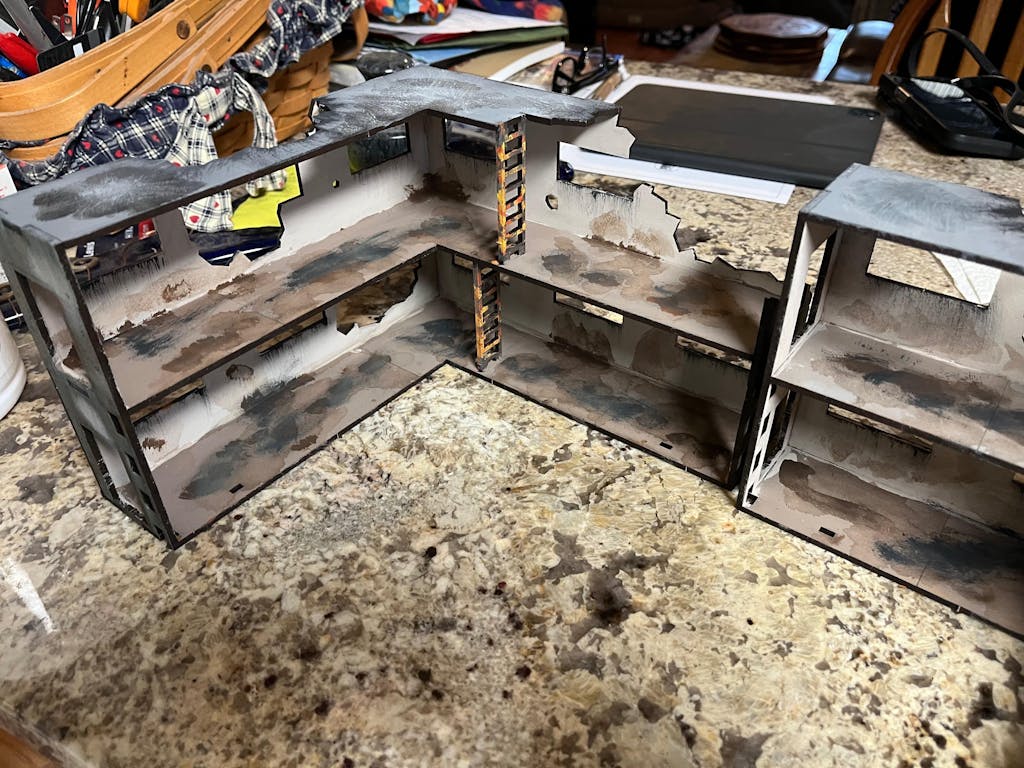 I love these, they assembled very easily, and are solid once complete. The ruined version comes with barriers, which I did not expect. They paint up great. I used stains and craft paints on these, along with some acrylic brush tip markers for the graffiti. I'm very happy with how they came out. I mistakenly ordered two ruined, meant to get 1 non-ruined and 1 ruined, but am happy with the 2 ruined I got. The easy access to all floors in game make them a fantastic addition to the gaming set up for my modern and near future skirmish games.