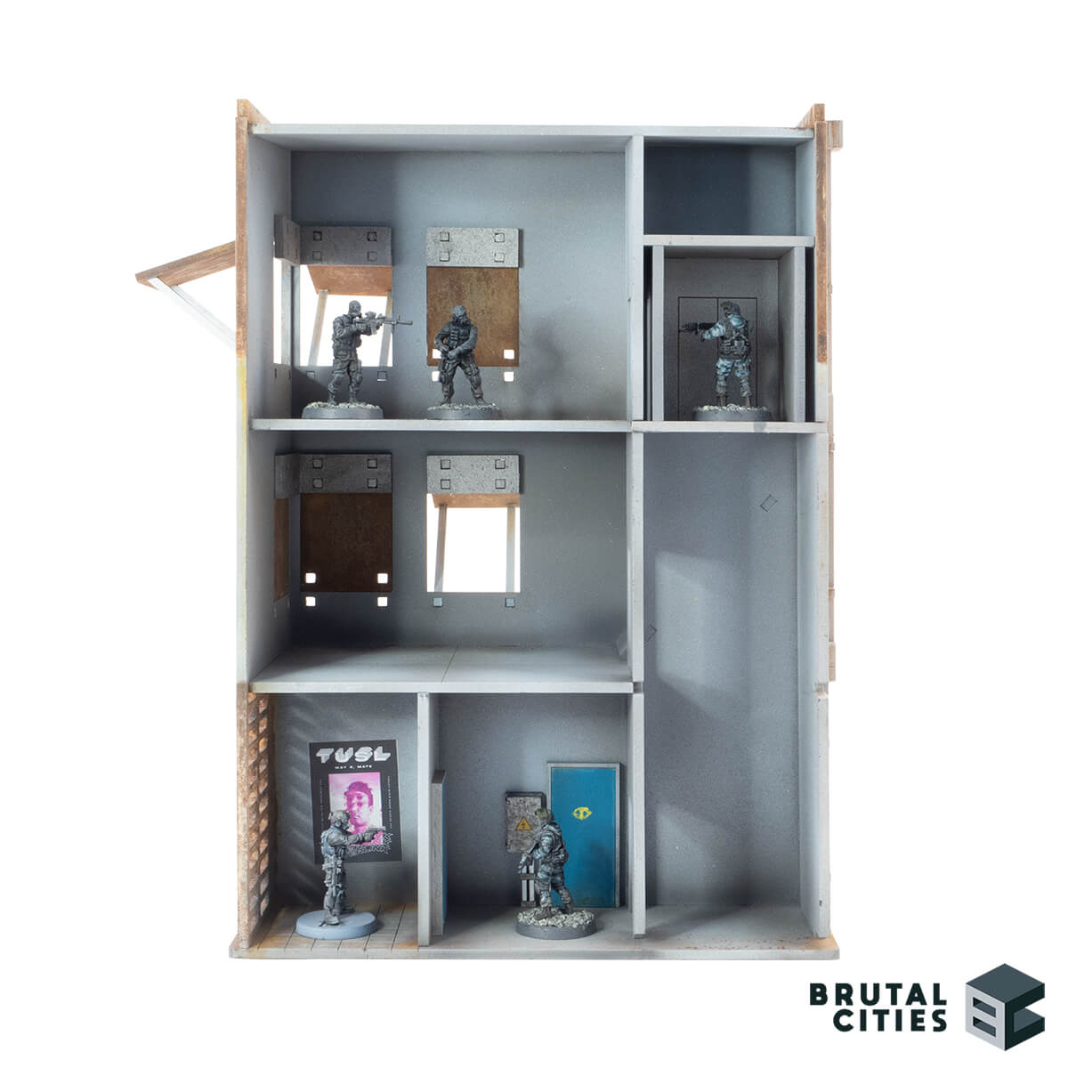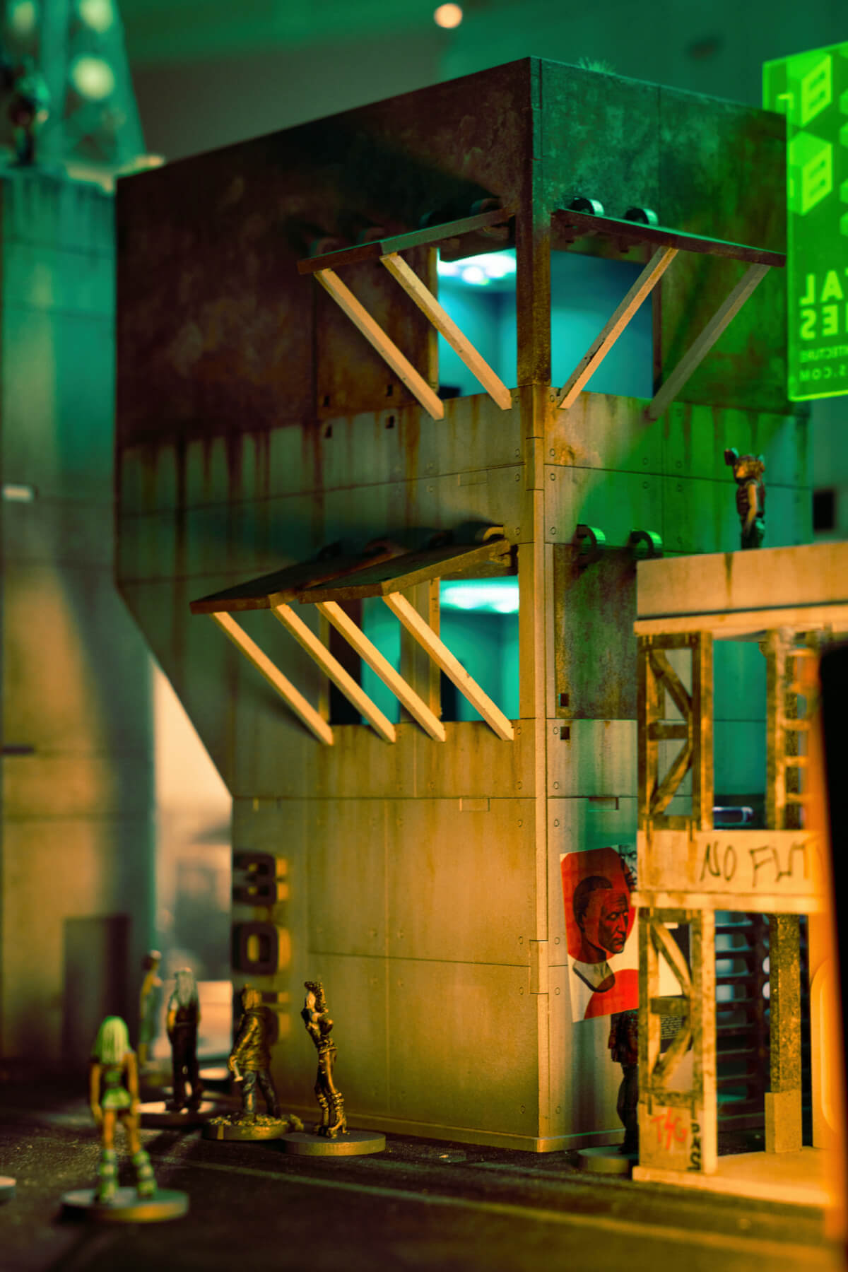 The 305 Sunshine Alley wargaming terrain kit is a modern office building with an underground club entrance. With various nooks, an internal elevator car and three levels, your miniatures have plenty of hiding places. If your cyberpunk, modern or sci-fi table is looking a little...suburban, this tall building will really make your table feel properly urban!